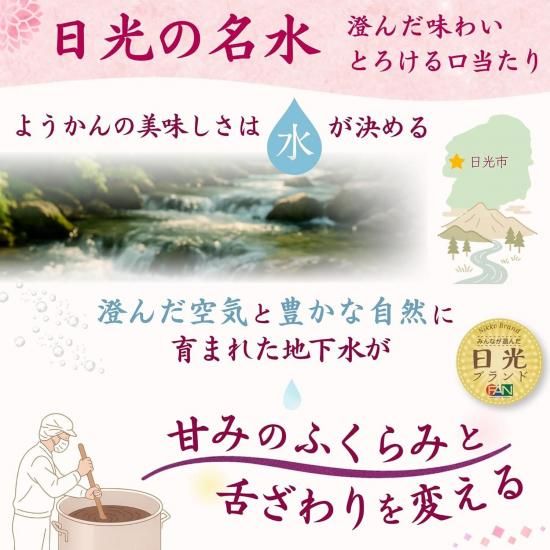 この澄んだやわらかな水が、ようかんにまろやかさと透明感のある甘さを与え、舌の上でふわりとほどけるような、上質な食感を生み出します。