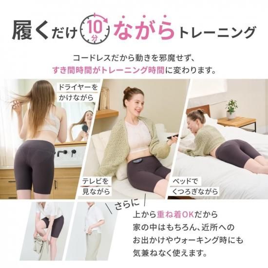 ヨガクリエイターaya監修、お尻から全身スタイルアップを目指すトレーニングパンツ。ヒップと太ももに配置されたEMSパッドが骨盤底筋にしっかりアプローチし、履くだけで手軽にケア。加齢や生活習慣で気になりやすい骨盤底筋のゆるみも、毎日の暮らしの中で自然にサポート。家事をしながら、テレビを見ながら、ベッドでくつろぐ時間にも使えるので、特別な時間をつくらず気軽に取り入れられます。伸縮性のある素材で心地よくフィットし、着脱も簡単。ジェルは不要、水をさっと吹きかけるだけで使えます。電極部分は汗や水分が残りにくい導電性シリコンを使用し、洗濯ネットに入れて自宅で洗えるため、清潔さもキープ。EMSの刺激は15段階で細かく調整でき、ノーマルとハード、2つのモードから選べます。コントローラーは充電式でコードレス。思い立ったときにすぐ使えるのも魅力です。日々の生活に自然となじみ、無理なく自分のペースで続けやすい一着です※製品の仕様、外観などは改良のため予告なしに変更することがあります